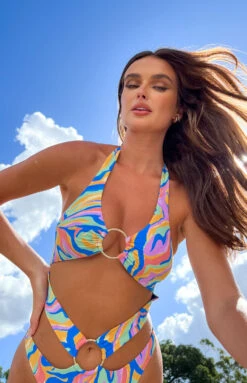 - Turn heads in this multi-coloured cut out one piece by 9.0 Swim. Pair with the 9.0 Swim Cleo Crochet Dress Pink for the ultimate hot summer ‘fit.