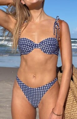 Navy Gingham Bikini Top