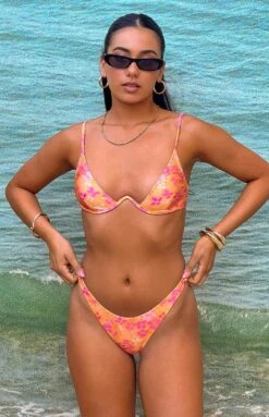 Our Bianca Orange Floral Bikini Bottoms offer the perfect blend of comfort and style. With a mid-rise fit and slightly cheeky cut, these bottoms are ideal for those who love a little extra coverage without sacrificing a fun, flirty vibe. Pair with any of our orange floral bikini tops for a coordinated set, or mix it up with a solid coloured top for a more understated beach look.