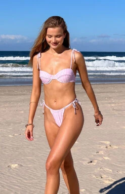 Our pink gingham tie up bikini bottoms are a perfect addition to your summer bikini collection. Pair with the matching print bikini top – the perfect set for your summer beach days!