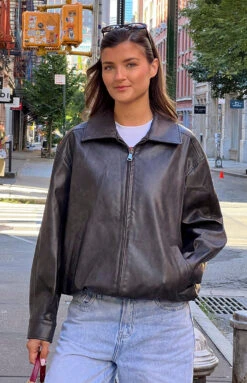 The Abbi PU Vintage Black Bomber Jacket is the ultimate cool girl vibe! Made from a heavy weight PU material in a gorgeous washed black colour, this jacket is the perfect everyday piece in the colder months! Layer it over a cropped tee and high-waisted jeans for a classic vibe, or style with a slip dress and combat boots for an effortlessly cool, grunge-inspired look!