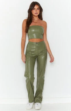 - These flattering PU pants are a staple piece and a wardrobe must have! Style with the matching Brielle strapless top, heels and gold accessories for that sleek night time look!