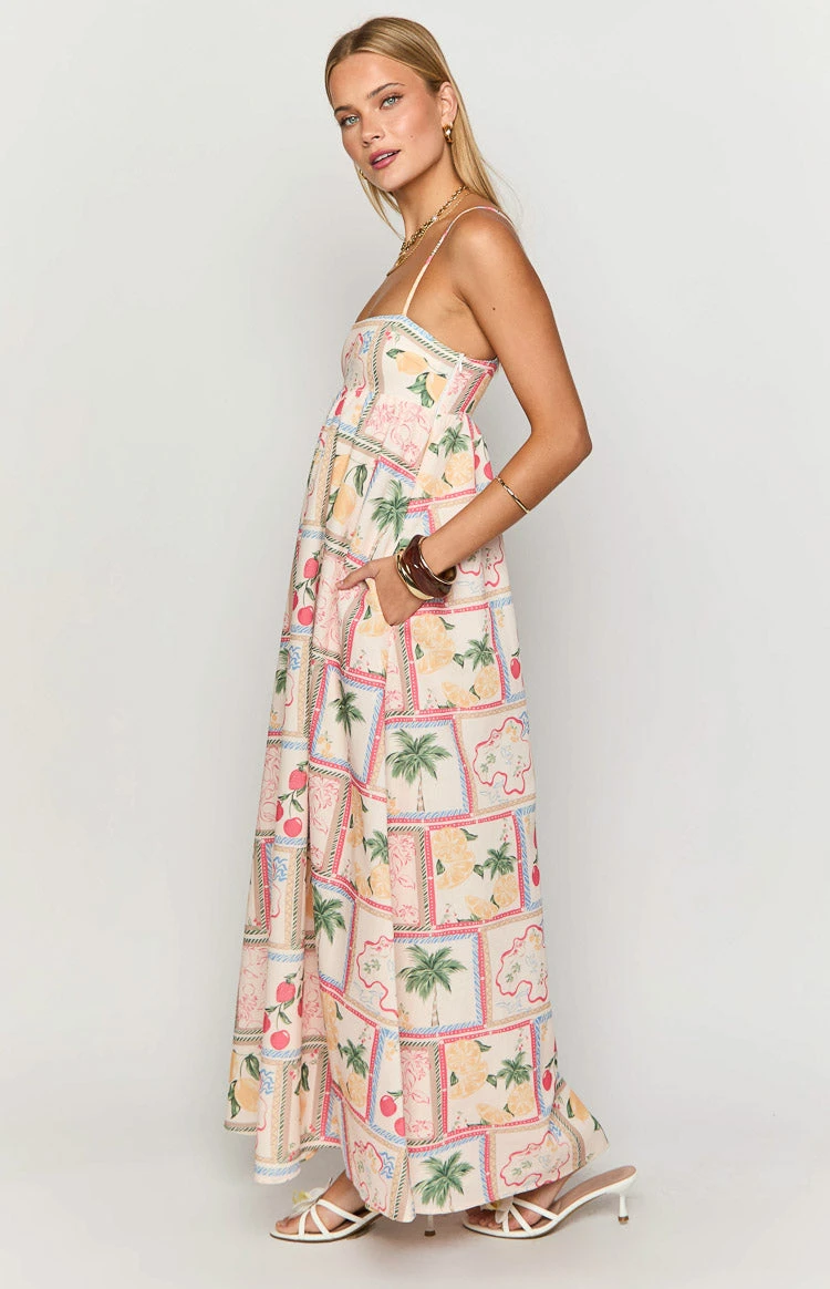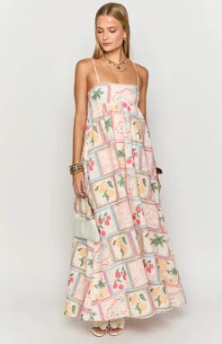 Our Akari White Tomato Girl Print Maxi Dress is summer perfection with its playful print! Featuring a fresh tomato and tile print, this maxi is effortlessly charming. Pair it with strappy sandals and a woven tote for a weekend market, or layer it under a cropped denim jacket for a casual-cool vibe. This dress is your ticket to a look that’s both elevated and playful!