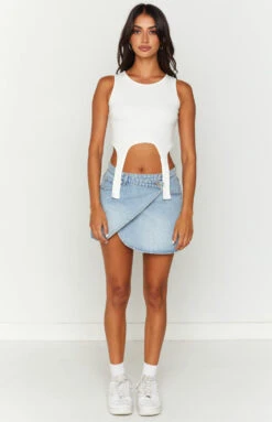 Pop on this unique asymmetric mini skirt for summer with a crop and sneakers! So cute and perfect for the warmer weather. Layer up with boots and a jacket for those cooler nights.