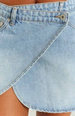 Denim Asymmetrical Wrap Mini Skirt
