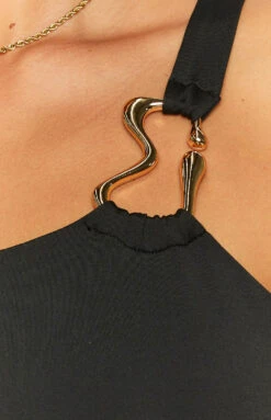 - No need to stress about finding the most perfect mini black dress for your next vacation! We have got you covered! This is the most dreamy vacation dress with an elegant gold detailing! Pair this dress with black heels and bold gold jewellery for your next party occasion or pair this dress chunky black sandals as well as dainty gold jewellery and a cute beach bag to walk around your resort!