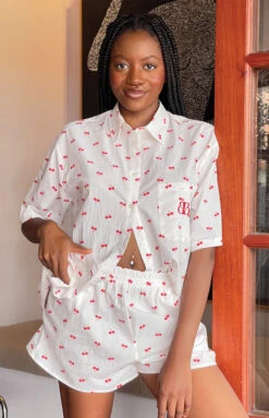 White Cherry Printed Pyjama shorts