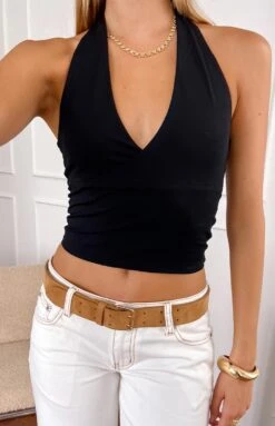 Our Amora Black Halter Crop Top is the ultimate elevated basic, offering both versatility and a flattering fit for any occasion! Crafted from stretch jersey fabric, it features a halter neckline and adjustable back neck tie for the perfect fit. Pair it with jeans for an effortless everyday look or style it with a mini skirt for a sweet festival or party outfit!