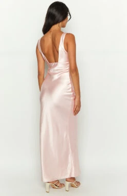- Pink Satin Maxi Dress