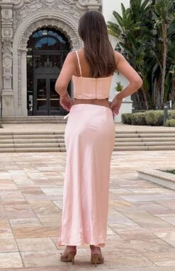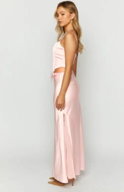Pink Satin Maxi Skirt
