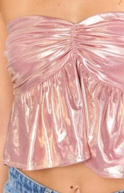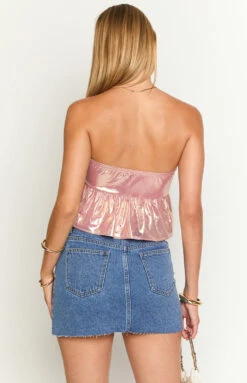 Pink Metallic Strapless Crop Top