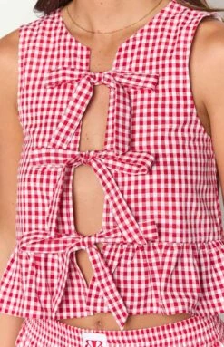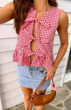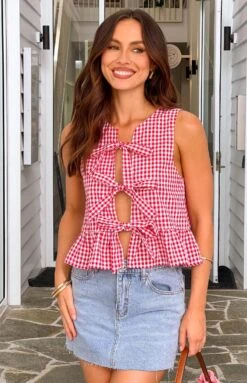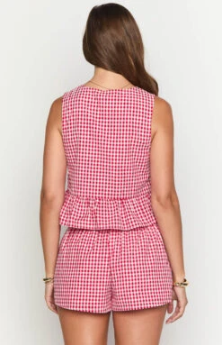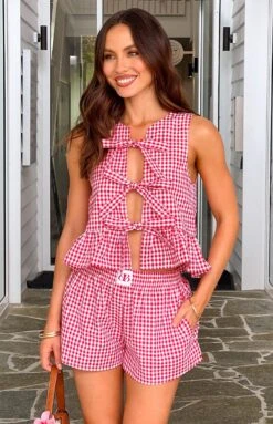 The Baxter Red Gingham Top is a must have for your summer wardrobe! Perfect for a picnic in the park or a casual summer day out! Style with a simple pair of denim shorts and black sandals for a relaxed summer outfit. Or pair with the matching Baxter Red Gingham Shorts and gold jewellery for a cute matching look!
