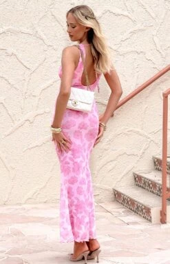 Pink Floral Mesh Maxi Dress