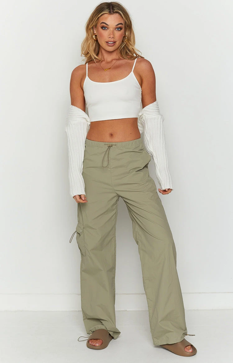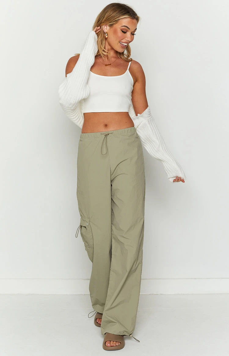- You’re sure to be serving looks in these grey drawstring cargo pants. Styled with a crop and sneakers makes the ultimate effortless and stylish look!