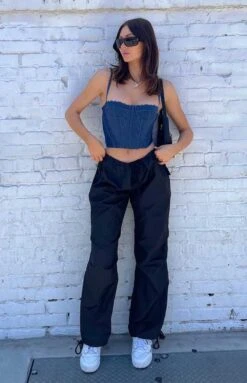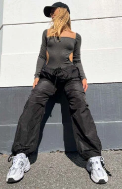 - Easy and comfy in these black drawcord pants. Chuck on sneakers and a crop top – so effortless yet you’re sure to look great!