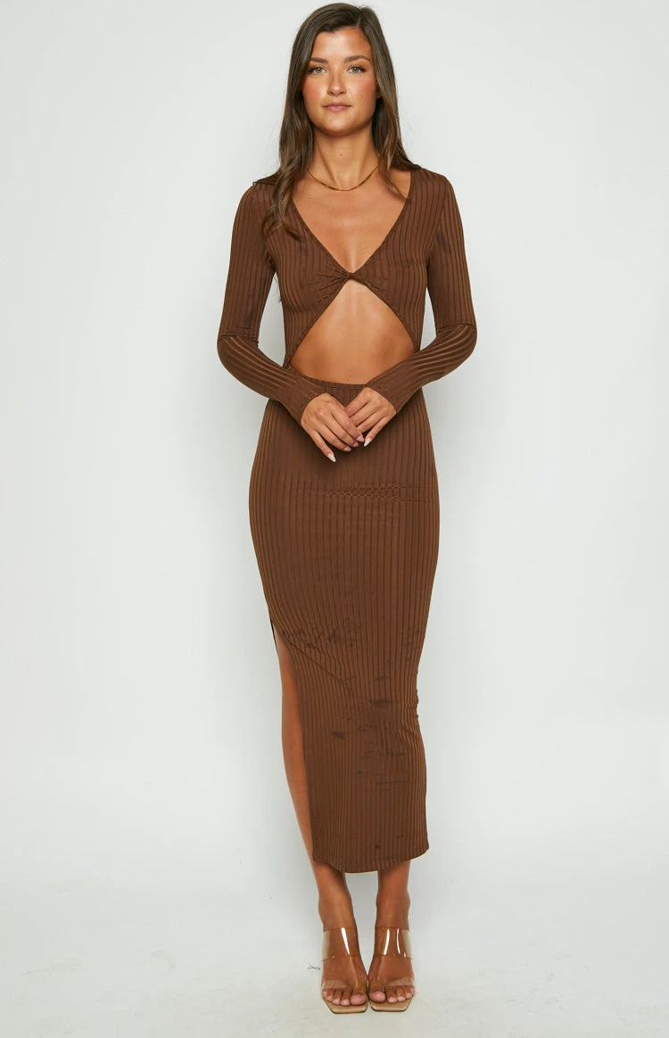 Beginning Boutique Hailey Cut Out Midi Brown