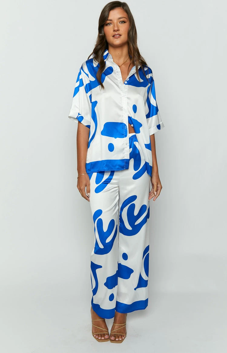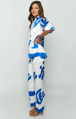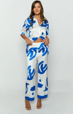 - These blue print pants are just as comfy as they look! Slip into these pants for your next beach vacation and relax pool side with a good book. Pair with the matching top or alternatively, just wear over a cute bikini set!