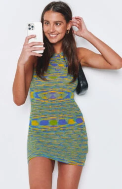 - We are loving this new mini dress in the space-dye knit. The high neck is super flattering and will look great with a dainty gold necklace – wear to your next festival or party!