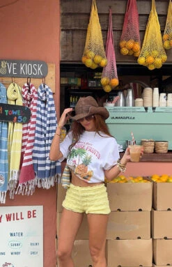 Presenting the Beginning Paradise Fruits White Tee, the ultimate island-inspired piece for your summer wardrobe rotation! The oversized fit makes it perfect to throw over a bikini after a swim at the beach! And the addition of a large placement print featuring bright vibrant colours evokes a laid-back coastal lifestyle. With an airy cut and relaxed silhouettes, the Beginning Paradise Fruits White Tee is a must-have for your next pool party, casual day out or even an island getaway! Simply pair with a denim skirt or shorts and sandals to fit the beachy, summer vibe!