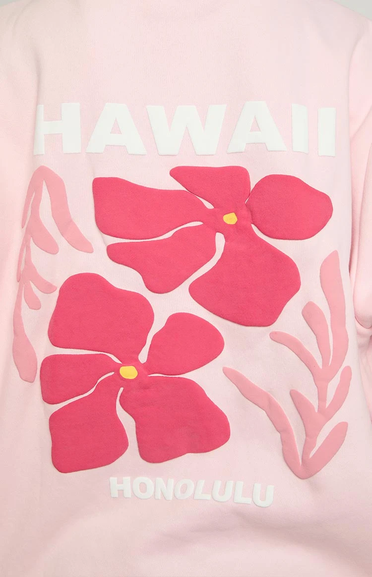 Our Beginning Pink Hawaii Hoodie offers stylish comfort with a feminine touch and unique print! With a soft fleece inner, floral designs, and front pockets, this oversized hoodie creates a cool-girl look perfect for school, university, or everyday wear. Pair with mid-wash jeans or a white skirt and sandals for an effortless, laid-back vibe!