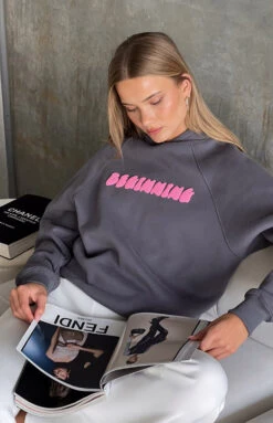 Stay cozy and cute in our beginning slate bubble hoodie. Perfect for a casual day out, pair it with high-waisted jeans or biker shorts for a sporty look and your favourite sneakers.