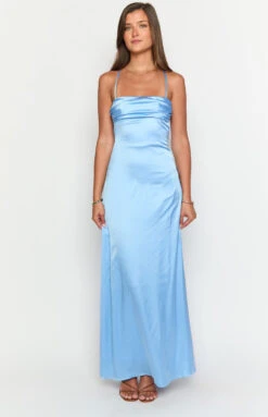 Blue Satin Maxi Dress