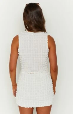 - A must have mini skirt, whether it’s for a picnic occasion or a night in the city! Paired with the Bubble White Short Sleeved Crop Top makes such a cute fit!
