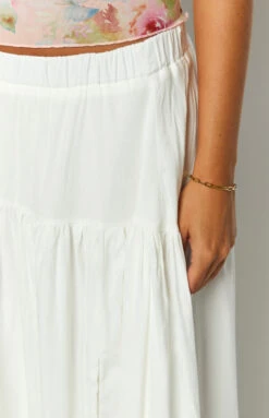 This white maxi skirt is perfect for every season and sure to become a staple in your wardrobe! Pair with sandals and a crop top for a chill day look, perfect for the beach!