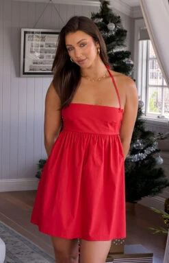 Red Tie Back Halter Mini Dress