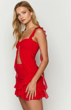 How cute is this red top! Style with a pair of denim jeans and sneakers for a casual look you can wear out with friends or shopping. Elevate the look with white satin pants and gold jewellery to suit a night out with friends.