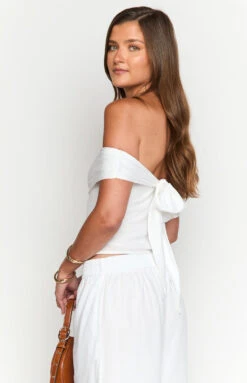 Our linen blend crop top is perfect for a sunny day! With an adjustable tie at the back, this top can be worn as an off shoulder or strapless top making this a timeless and versatile piece! Pair this look with white linen pants for a matching moment, or jeans and heels for a simple yet sophisticated look.