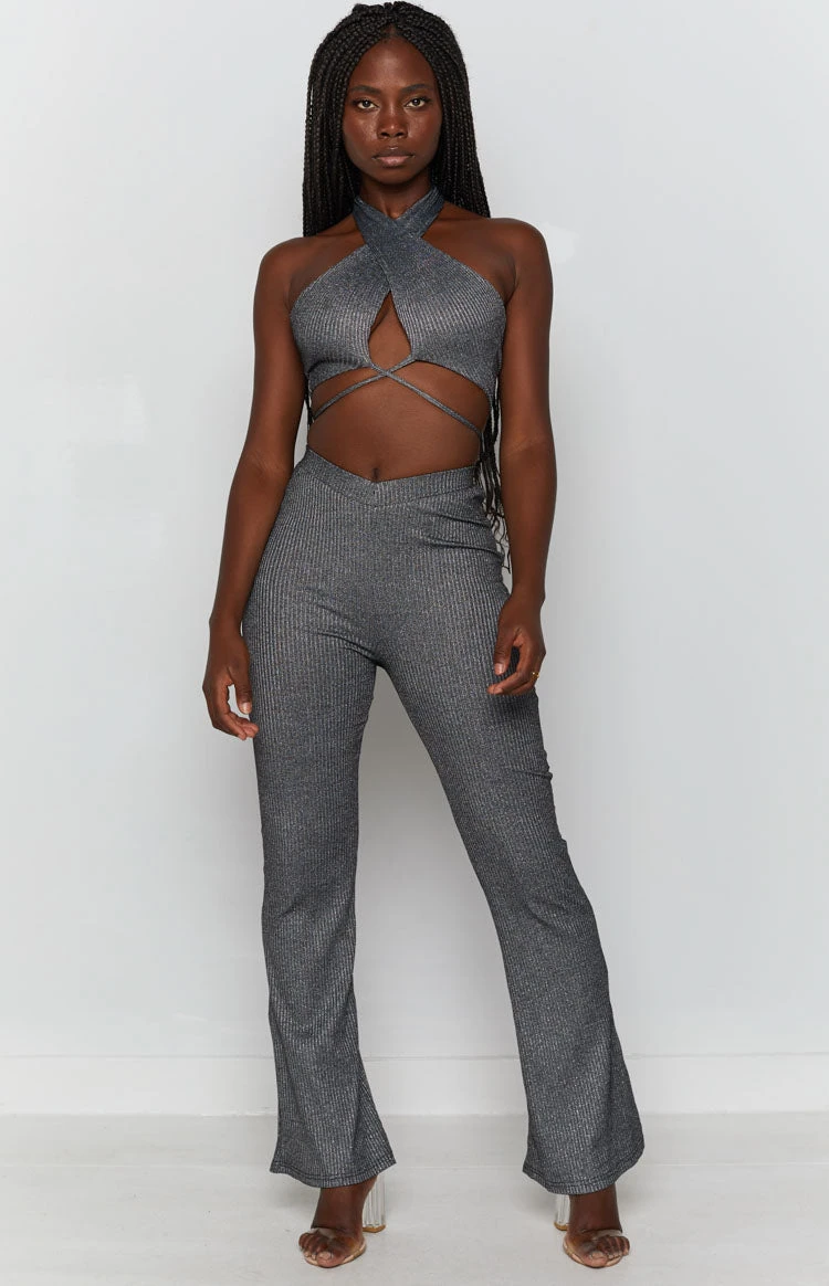 - Stand out in silver girl! These pants scream major 80s vibes, and we wouldn’t have it any other way – pair with the matching crop top for the ultimate silver girl outfit