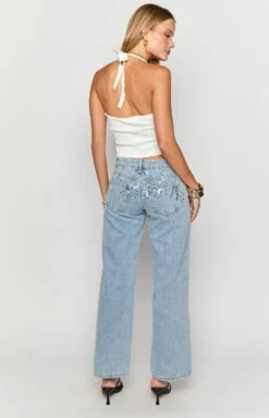 Elevate your denim game with our Clara Sequin Low Rise Jeans. These light wash jeans add a touch of sparkle to your casual wardrobe, perfect for turning heads. Pair them with a fitted crop top and heels for a fun night out, or dress them down with an oversized sweater and chunky sneakers for a cool, off-duty look.