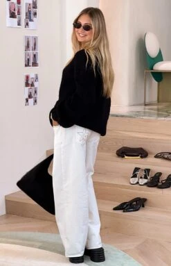 Our Clara Star White Denim Low Rise Jeans are the perfect not-so basic piece for those colder days! Featuring an adorable star patch on the back pocket and made in a low rise fit, these jeans are the perfect cool and casual staple! Pair with a knit jumper and sneakers for an effortlessly cute and casual look.