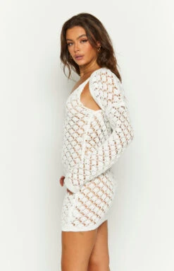 - The beach is calling in this stunning knit mini dress with the matching bolero. Perfect for a day by the beach thrown over your swimwear, or dressed up with the bolero, a shoulder bag and heels for dinner that night by the water!