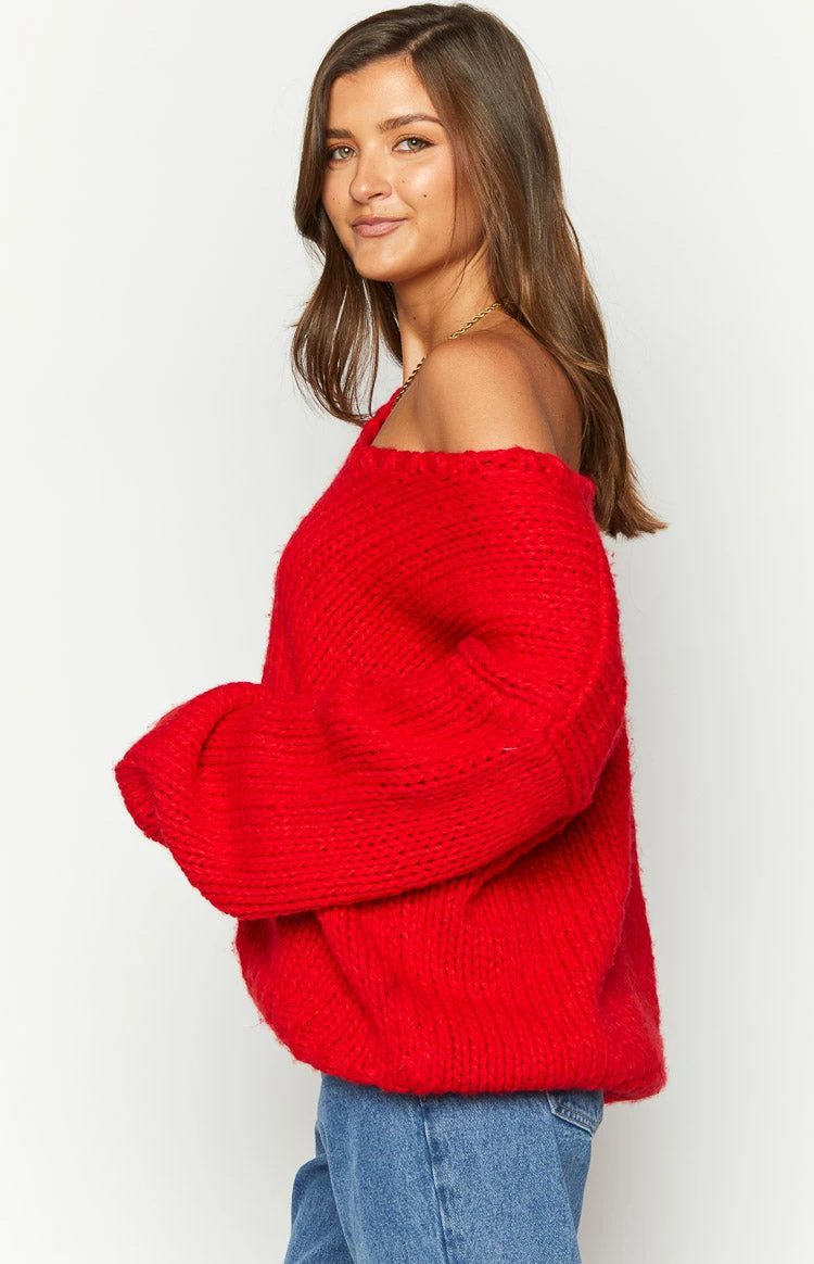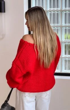 This Delvey Red Chunky Knit Sweater is the perfect addition to your winter wardrobe. Made from heavy weight knit material, it will keep you warm and cozy all season long. Paired with denim and sneakers makes an easy and trendy fit.