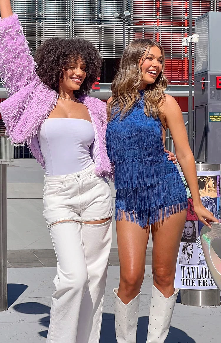 Blue tassel playsuit:
