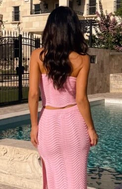 - Be pretty in pink with our knit top! Designed with light-weight knit material it’s the perfect piece to add to your summer wardrobe. Style with the matching midi skirt or style down with a denim skirt, add sunglasses and gold jewellery to complete the look.