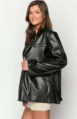 Radiate cool girl vibes in our Desi jacket. This faux leather jacket is an essential for any girls wardrobe! Perfect for date night or drinks with the girls. Pair with jeans and a tee for a more casual look or a skirt and heels to level up your style.