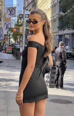 This elegant off the shoulder mini dress is a must have for your wardrobe. Featuring an off the shoulder neckline that beautifully frames the shoulders and completed in a stretchy fabric for a flattering and comfortable fit, you can’t go wrong with the Eira mini! Simply pair with matching black heels and gold statement earrings for the perfect night out look!