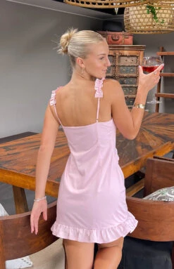 Feel pretty in pink with our Elara Light Pink Mini Dress! With adorable ruffle details and a v neck neckline to match, this mini dress is perfect for a daytime event! Finish with dainty gold jewellery and strappy heels for an elegantly playful look.