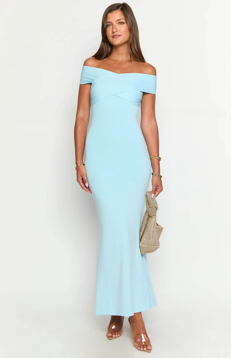 Steal the show in our Elizza Blue Maxi Dress! The beautiful baby blue colour, cross over bust detailing and stretch mesh fabric makes for the perfect evening dress! This number is perfect for your next rooftop bar event or formal! Simply pair with a clutch and heels and you’re ready to go!