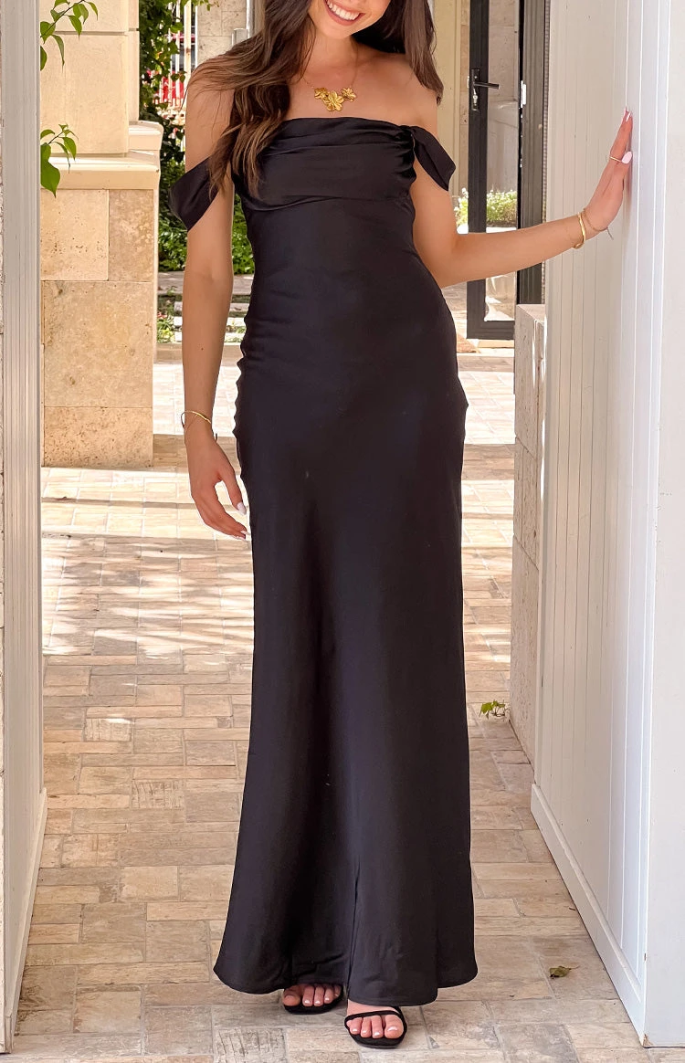 It’s your moment in this chic, off the shoulder formal maxi dress. Elevate with black heels and GORG statement earrings. Timeless and stunning!