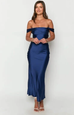 Turn heads in our stunning Ella navy off shoulder maxi dress. This piece is the perfect option for your next formal event whether it be homecoming, a birthday, or graduation! Pair this elegant dress with nude heels and a simple clutch. To enhance the look, add some gold jewellery!