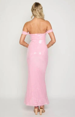 Pink Sequin Off Shoulder Formal Maxi Dress