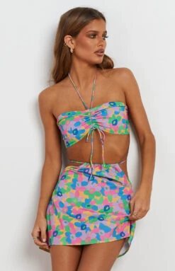- Spring into the weekend in this gorgeous multi-coloured floral print mini skirt. Match with the Milana Multi Bralette Top and heels for your new go-to look.
