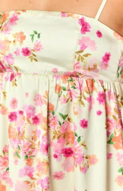 Yellow Floral Satin Mini Dress