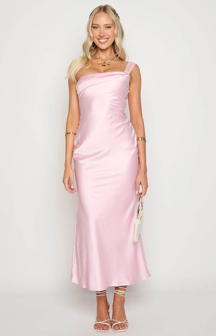 Our Erica Pink Maxi Dress is an elegant and effortlessly chic choice for your next formal event. Featuring a beautiful pink satin material, one shoulder detail, and a flattering maxi length, this dress shines all on its own! The draped neckline adds an elegant touch, while the bias cut ensures a flattering fit. Pair with simple heels and dainty gold jewellery for an effortless look.
