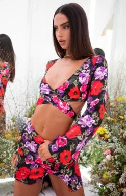 - Keep it fun and flirty in the gorgeous Farafra Red Front Wrap Top. Pair with the matching Clea Red Floral Mini Skirt and black strappy heels for a look that will never go out of style.