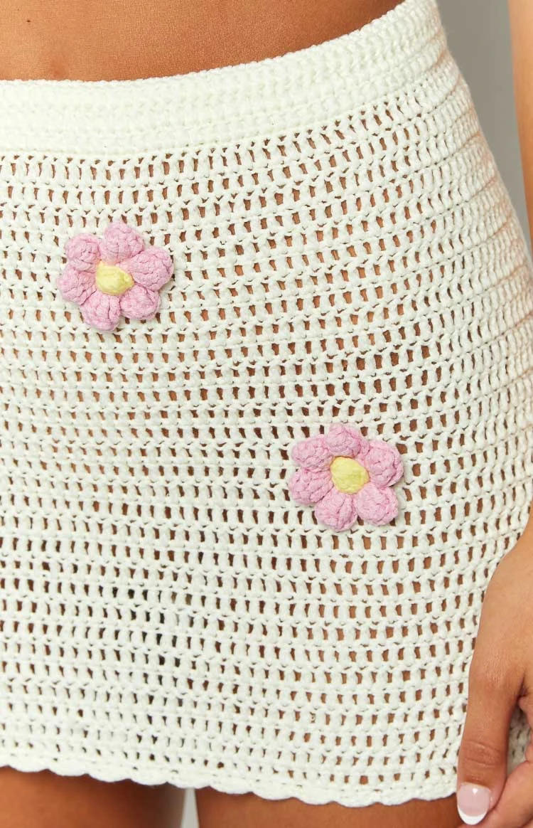 - Don’t forget to pack this stunning crochet mini skirt for your next beach day! Pair it with the matching crop top and cute sandals and you be ready to have a perfect beach day!